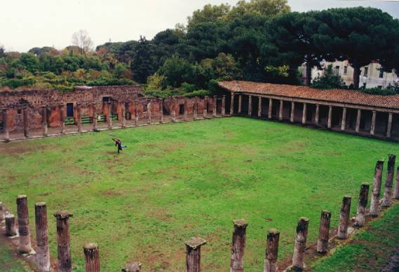 Aqui era on els gladiadors s'entrenaven per després lluitar a l'amfiteatre (com a Gladiator, però en petit)... N'Aina s'entrena amb el seu paraigues!